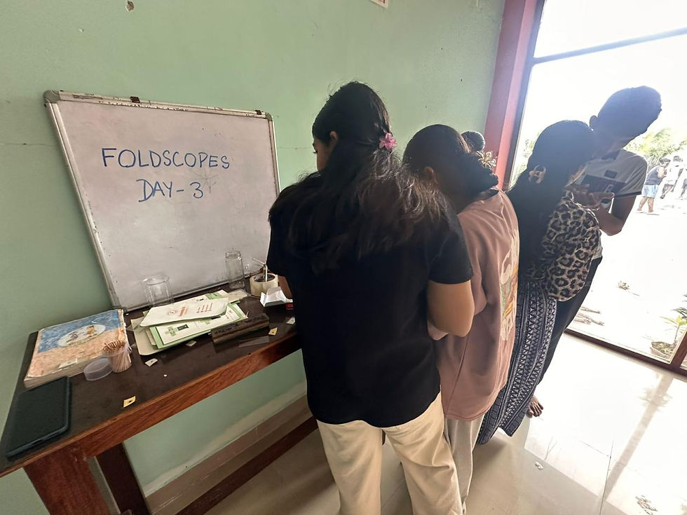 The following day brought another beautiful moment of learning. The senior students led the session and taught the juniors how to assemble and use the foldscope. Watching these young teachers share what they had learned with confidence and enthusiasm was truly heartwarming.