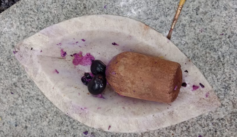 We did experiments using jamun pulp as our paint. We observed the colours that emerged when it was mixed with water, lemon juice, and soap. Historically, various parts of the tree - including its leaves and bark - have been used to prepare natural brown and purplish dyes for fabrics.